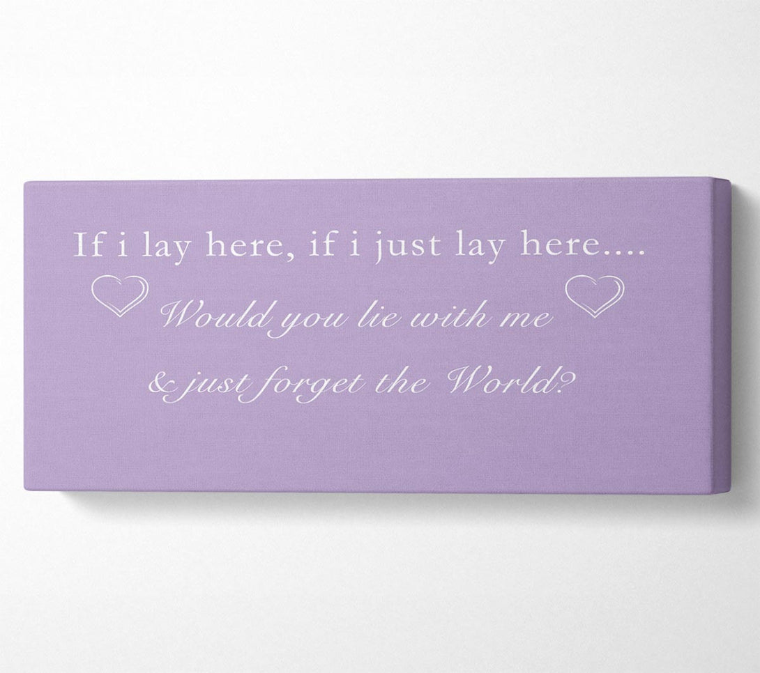 Music Quote If I Lay Here Snow Patrol Lilac canvas, printed on coated polyester canvas. Mounted on to a 44mm box frame, ready to hang.