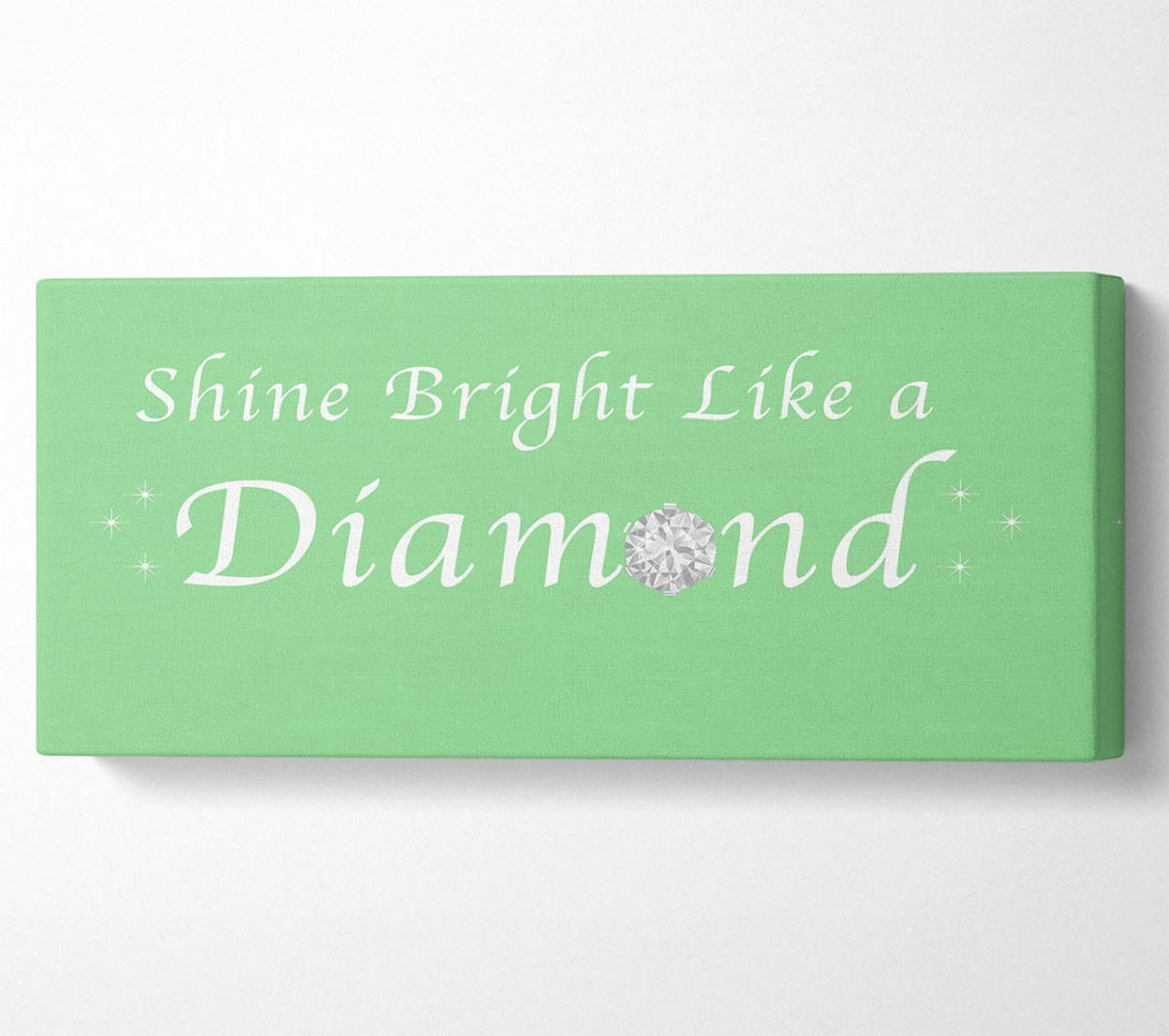 Music Quote Shine Bright Like A Diamond Rihanna Green canvas, printed on coated polyester canvas. Mounted on to a 44mm box frame, ready to hang.