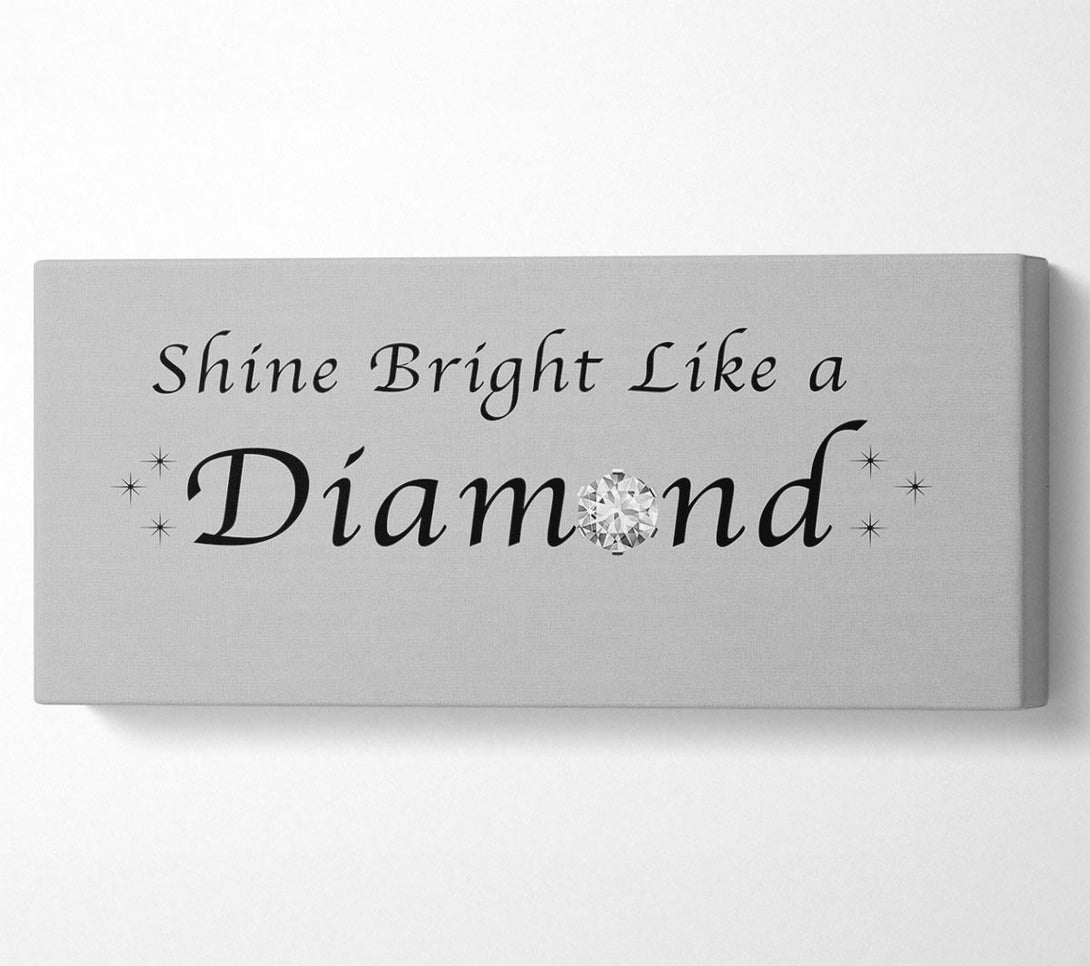 Music Quote Shine Bright Like A Diamond Rihanna Grey canvas, printed on coated polyester canvas. Mounted on to a 44mm box frame, ready to hang.