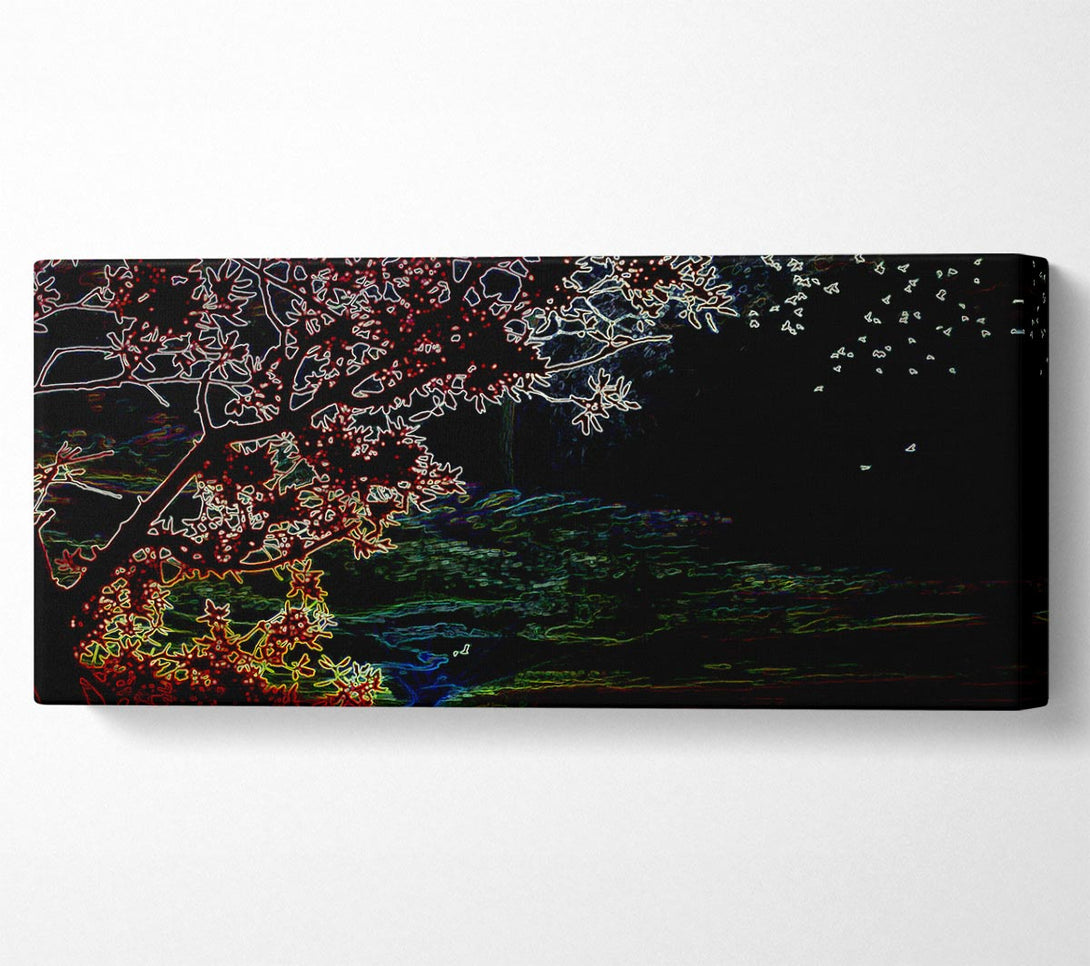 Neon Lake canvas, printed on coated polyester canvas. Mounted on to a 44mm box frame, ready to hang.
