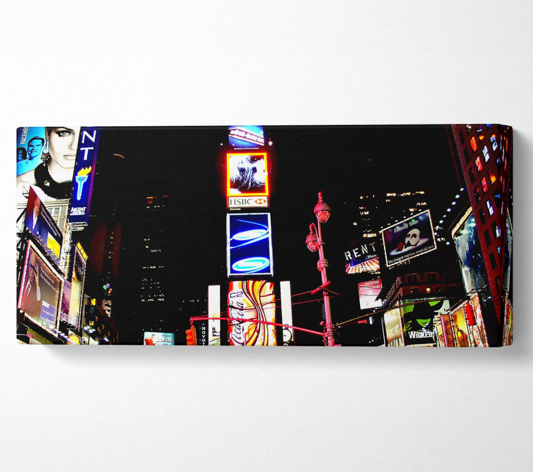 New York Broadway Night Lights canvas, printed on coated polyester canvas. Mounted on to a 44mm box frame, ready to hang.
