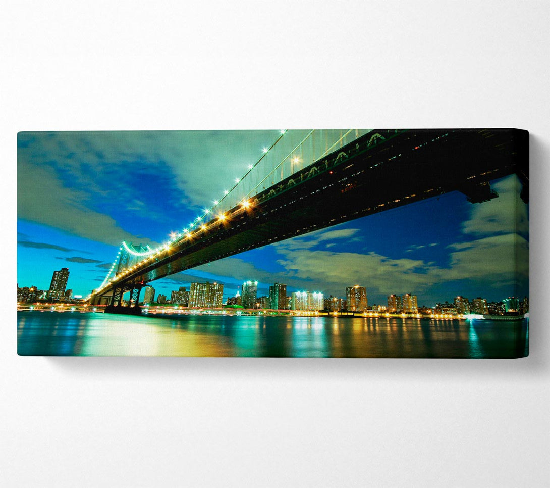 New York Brooklyn Bridge From Below canvas, printed on coated polyester canvas. Mounted on to a 44mm box frame, ready to hang.