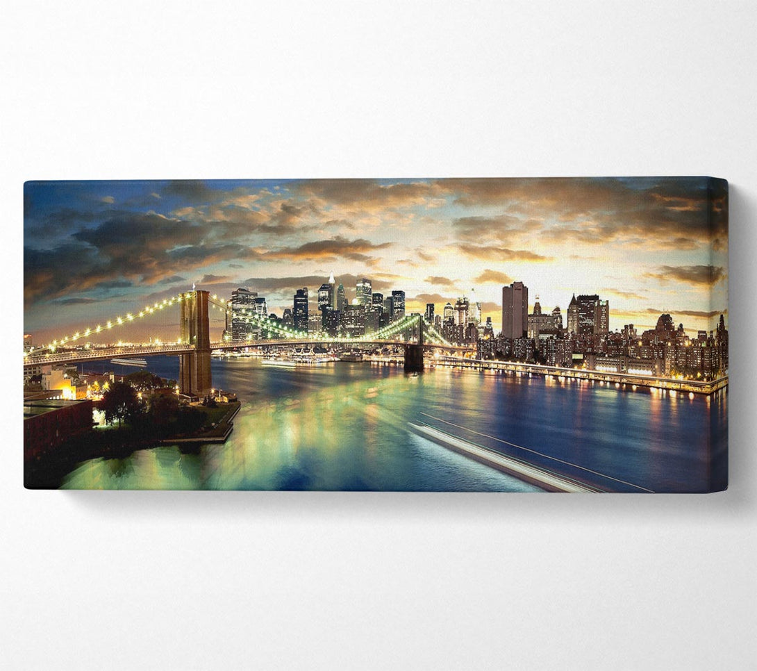 New York City Brooklyn Bridge View canvas, printed on coated polyester canvas. Mounted on to a 44mm box frame, ready to hang.