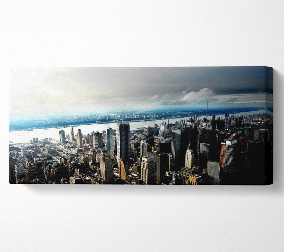New York City Hudson River canvas, printed on coated polyester canvas. Mounted on to a 44mm box frame, ready to hang.