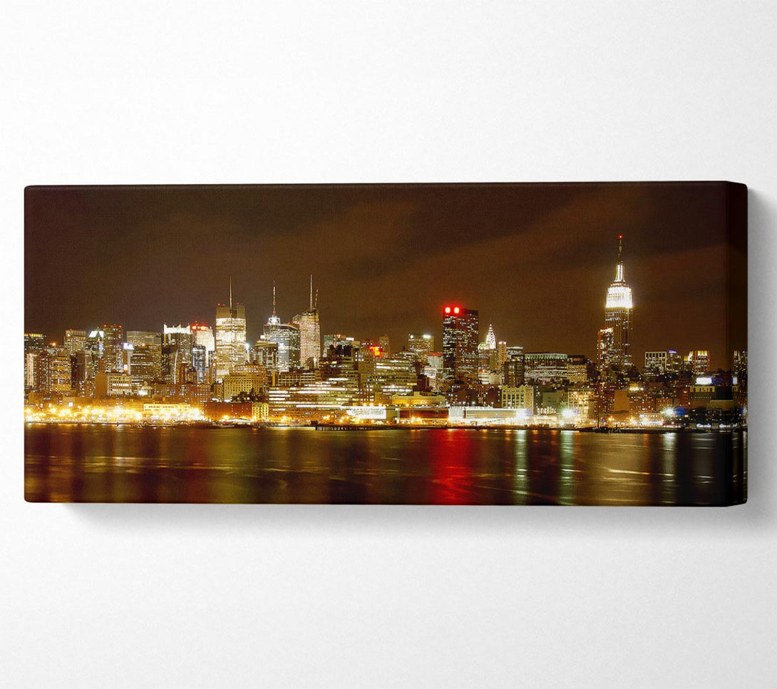 New York City Night Reflections canvas, printed on coated polyester canvas. Mounted on to a 44mm box frame, ready to hang.