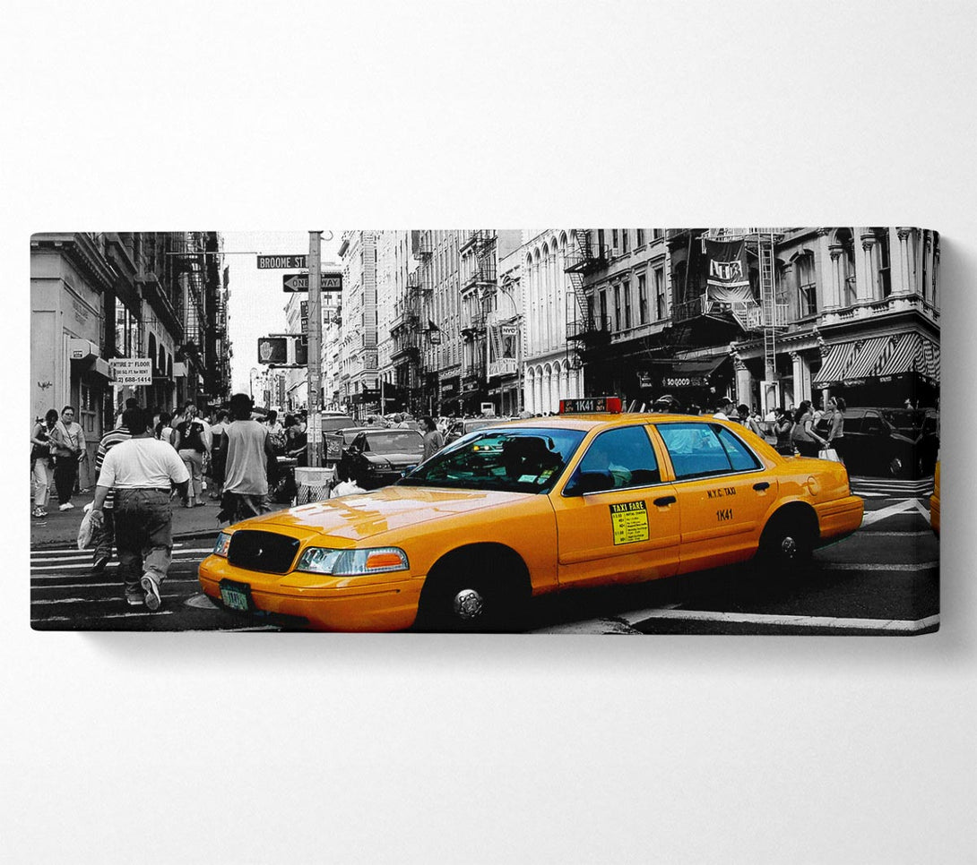 Picture of New York City Yellow Cab Crossing Panoramic Canvas Wall Art