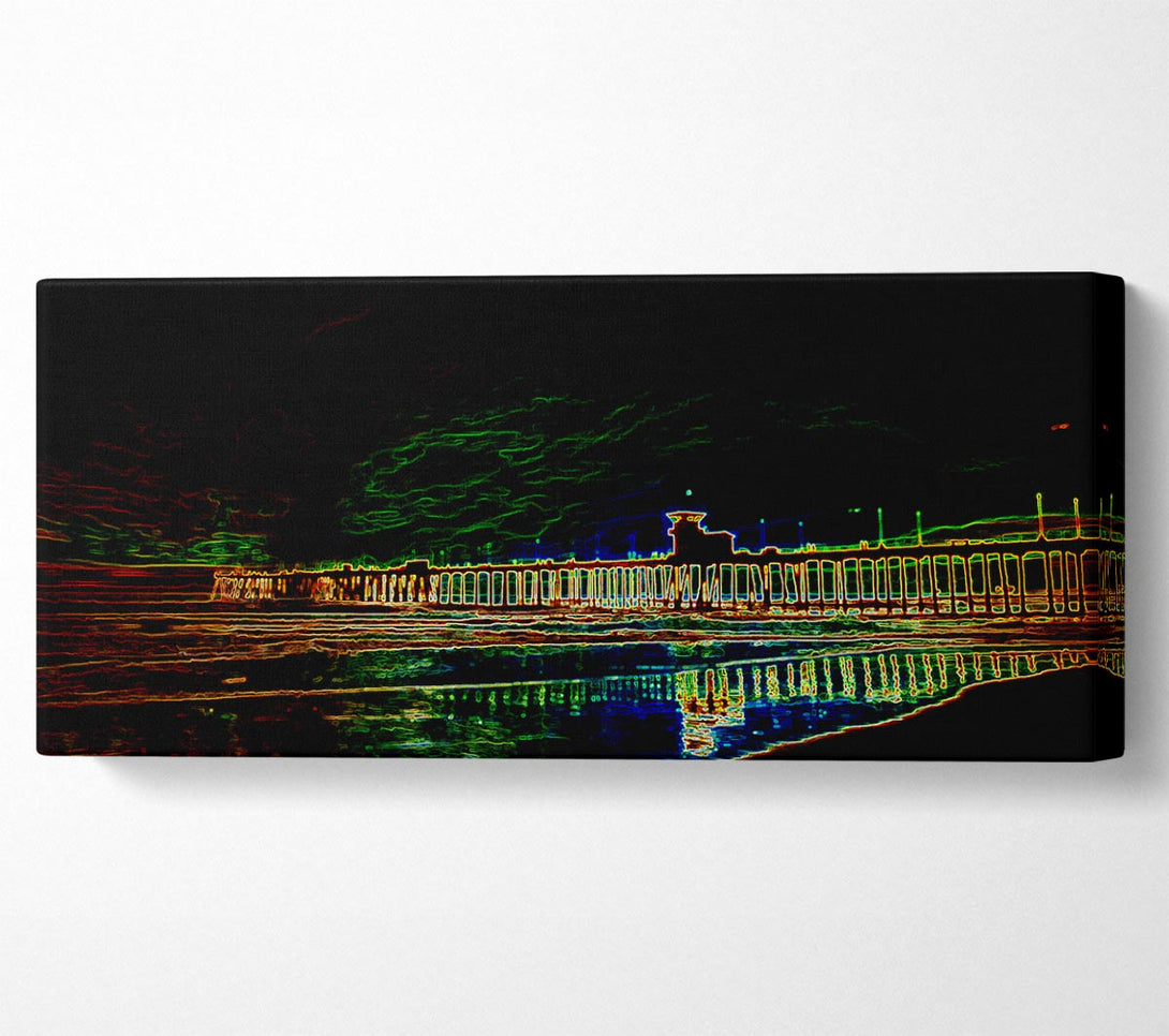 Night Pier canvas, printed on coated polyester canvas. Mounted on to a 44mm box frame, ready to hang.