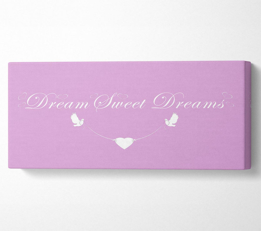 Nursery Quote Dream Sweet Dreams Pink canvas, printed on coated polyester canvas. Mounted on to a 44mm box frame, ready to hang.