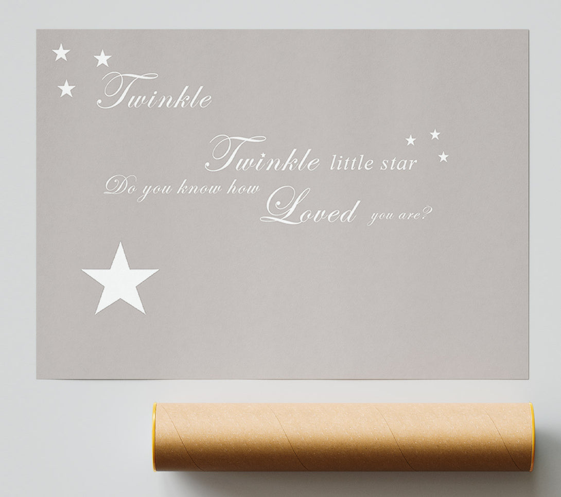 Our Nursery Quote Twinkle Twinkle Little Star 1 Beige Poster is printed 260 GSM premium lustre paper that offers vibrant colours and exceptional detail.