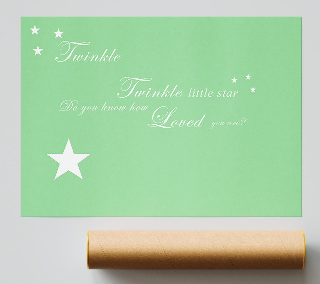 Our Nursery Quote Twinkle Twinkle Little Star 1 Green Poster is printed 260 GSM premium lustre paper that offers vibrant colours and exceptional detail.