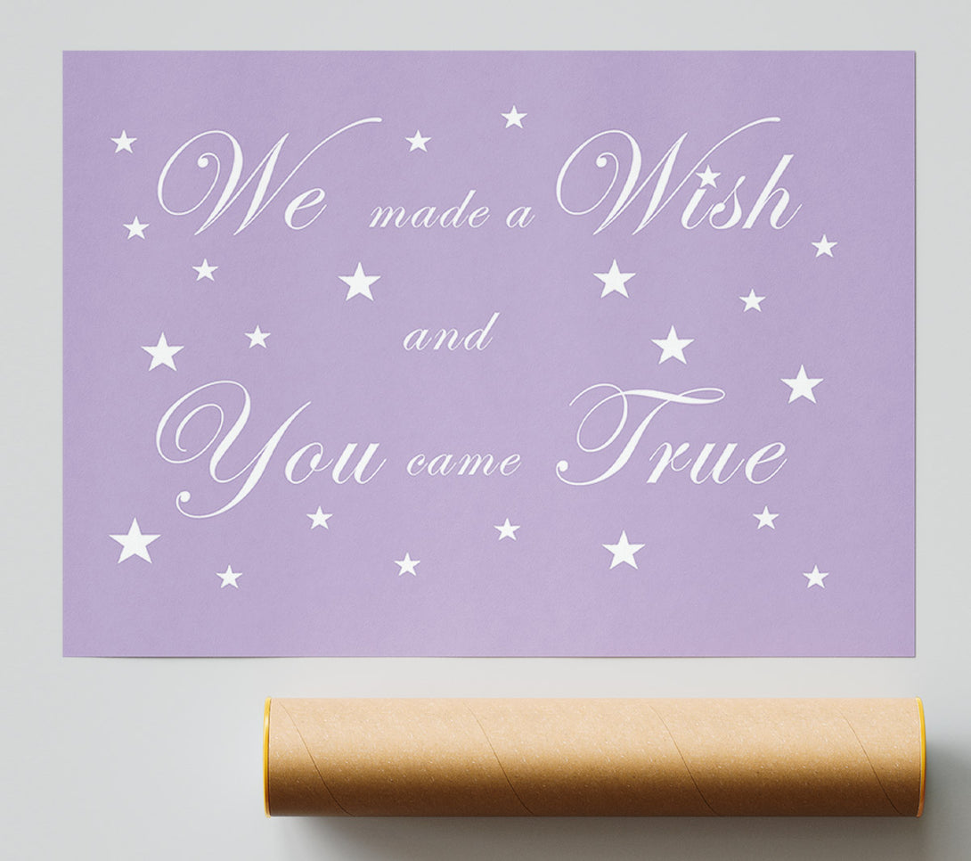 Our Nursery Quote We Made A Wish And You Came True Lilac Poster is printed 260 GSM premium lustre paper that offers vibrant colours and exceptional detail.
