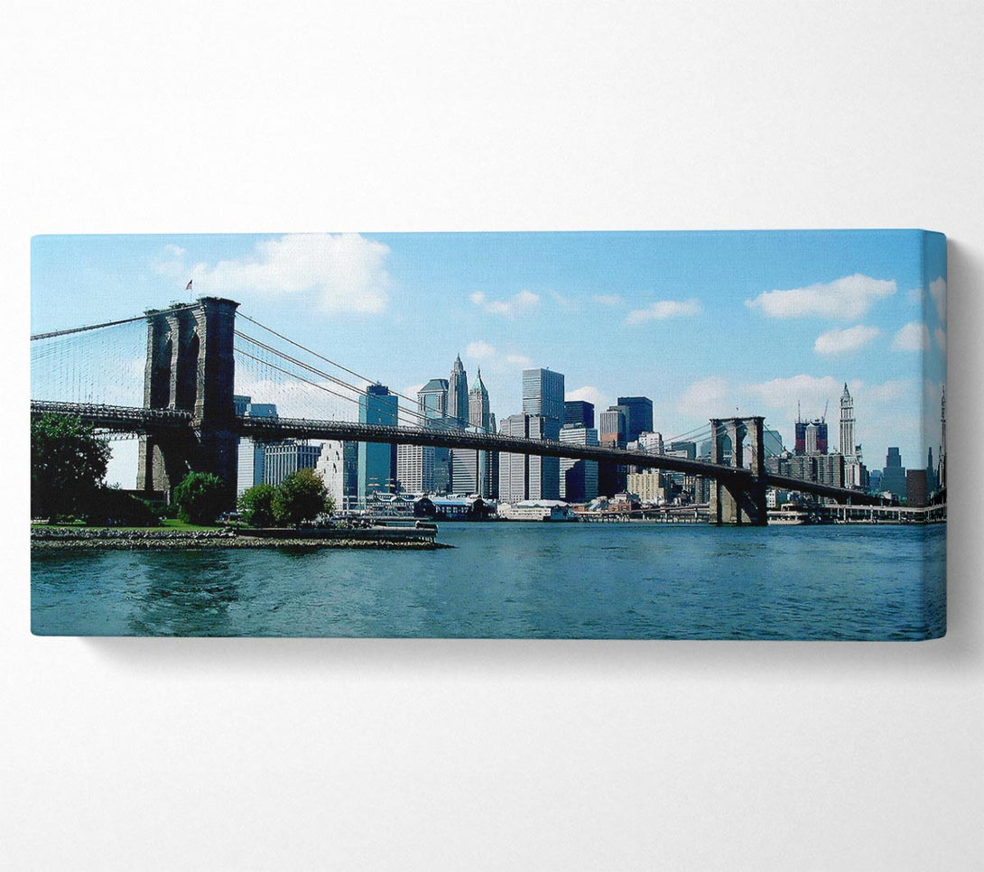 Nyc Brooklyn Blue canvas, printed on coated polyester canvas. Mounted on to a 44mm box frame, ready to hang.