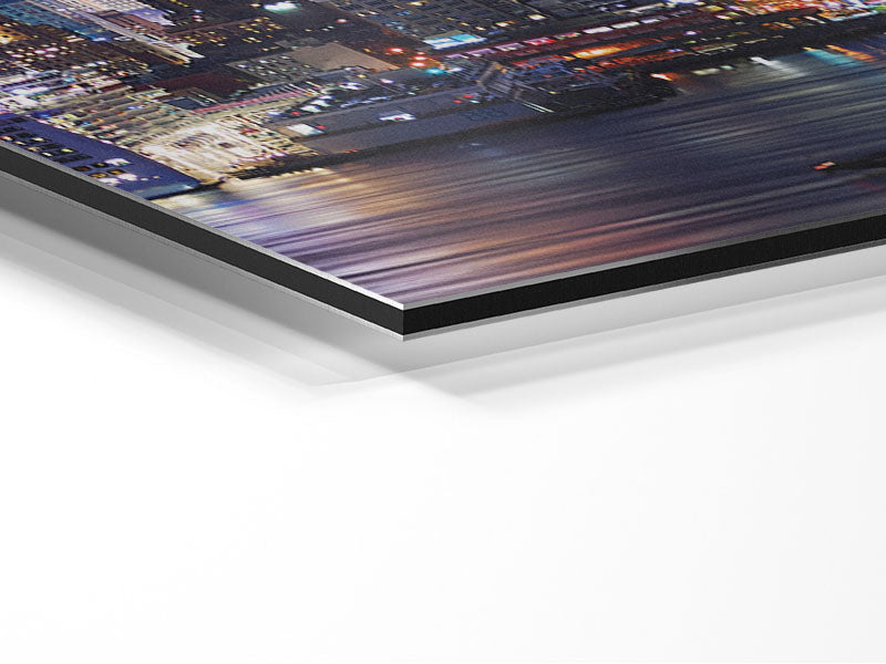 NYC Harbour At Night Printed on brushed aluminium dibond. A modern way to display art and easy to maintain.