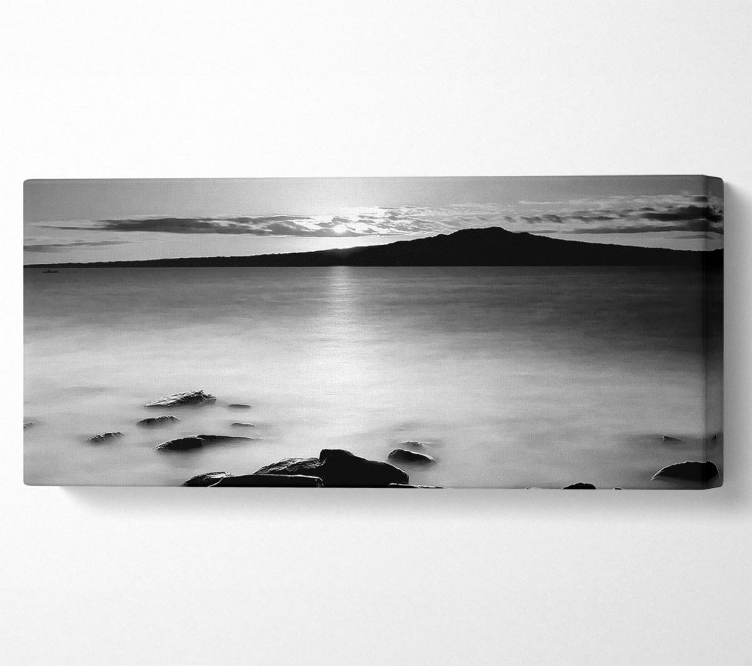 Picture of Ocean Mist Reflections B n W Panoramic Canvas Wall Art