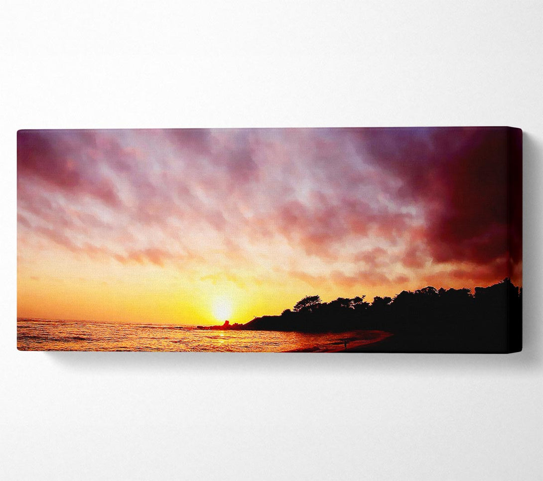 Picture of Ocean Path To The Mountain Sunset Panoramic Canvas Wall Art