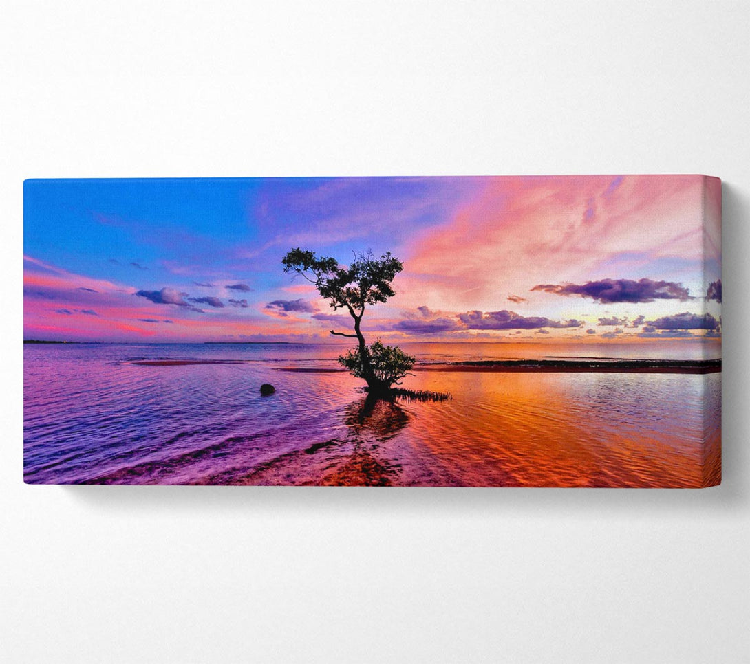 Picture of Ocean Tree Dusk Panoramic Canvas Wall Art