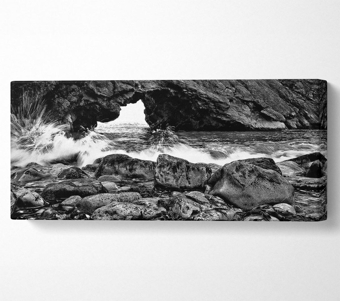 Oceans Gateway B n W canvas, printed on coated polyester canvas. Mounted on to a 44mm box frame, ready to hang.