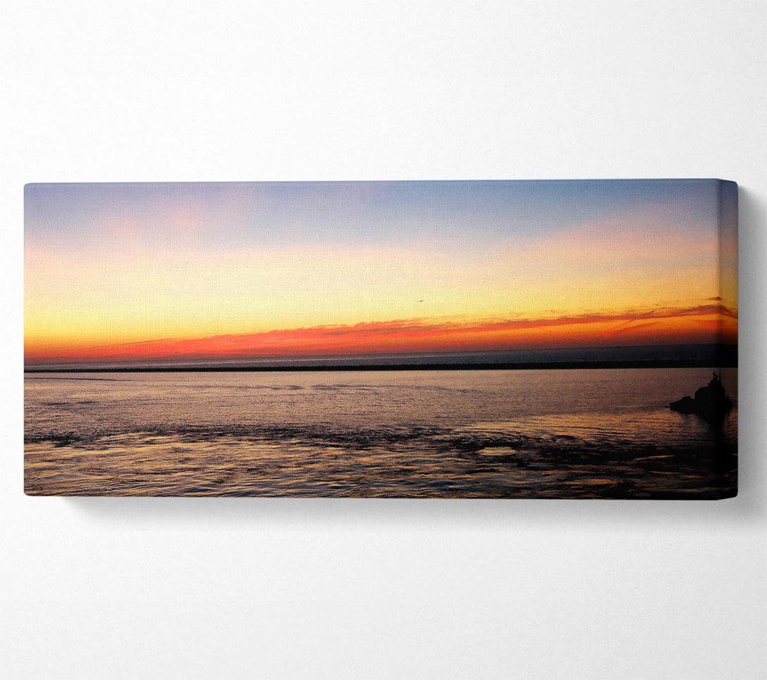 Oceans Skyline canvas, printed on coated polyester canvas. Mounted on to a 44mm box frame, ready to hang.