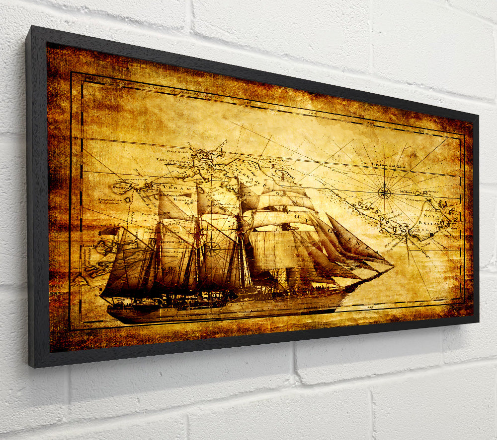 Old World Map With Ship