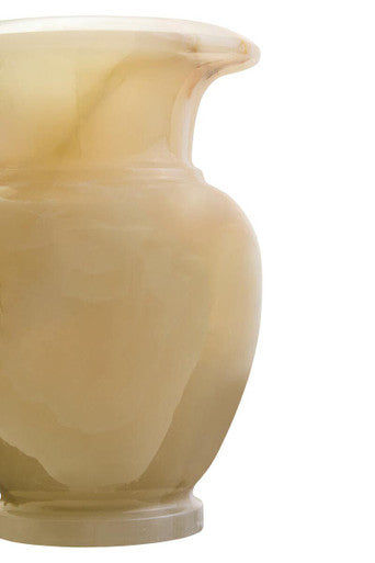 This decorative vase is handcrafted from natural onyx, featuring rich brown and cream veining in a polished finish. Its contemporary design and wide rim make it a striking piece for sideboards or consoles, blending natural charm with a bold, timeless look. *This product is handcrafted, colours may vary due to the nature of the product.*