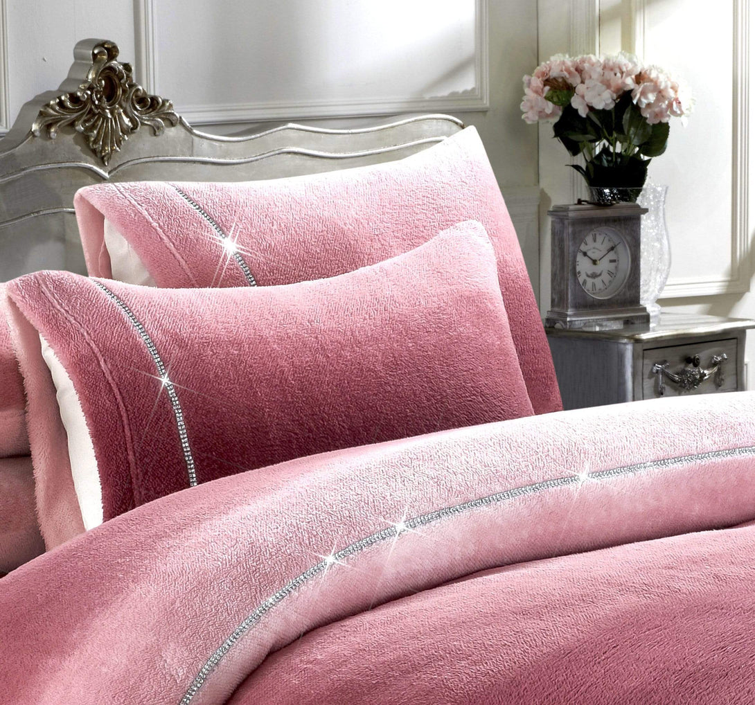 Ombre Teddy Fleece Duvet Set with Diamante Detailing Luxurious Super Soft Bedding Two-Tone Design Available in Single Double King Sizes by OLIVIA ROCCO