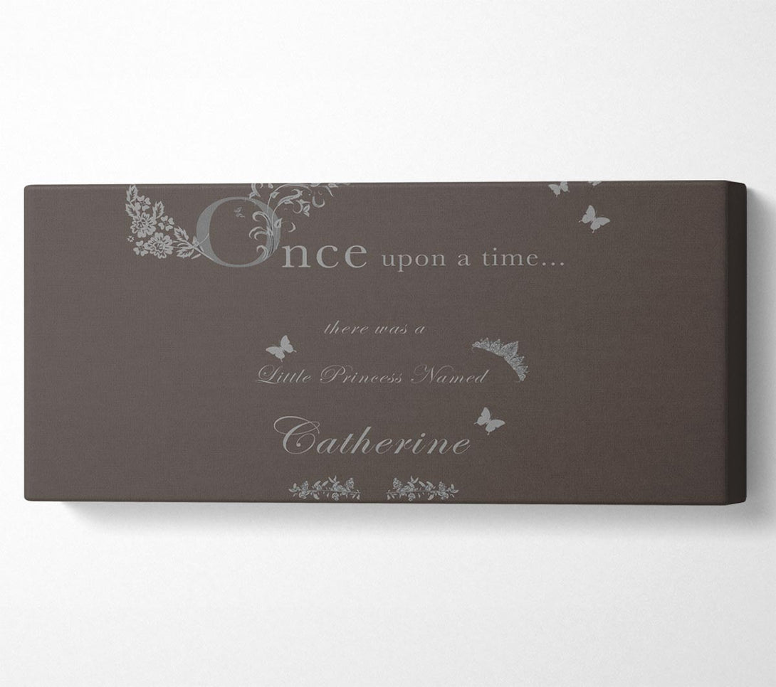 Once Upon A Time Your Name Chocolate canvas, printed on coated polyester canvas. Mounted on to a 44mm box frame, ready to hang.