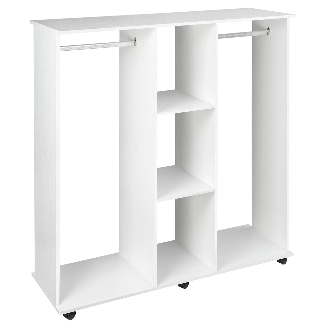 Open Wardrobe Double Mobile Storage Shelves Organizer W/6 Wheels-White