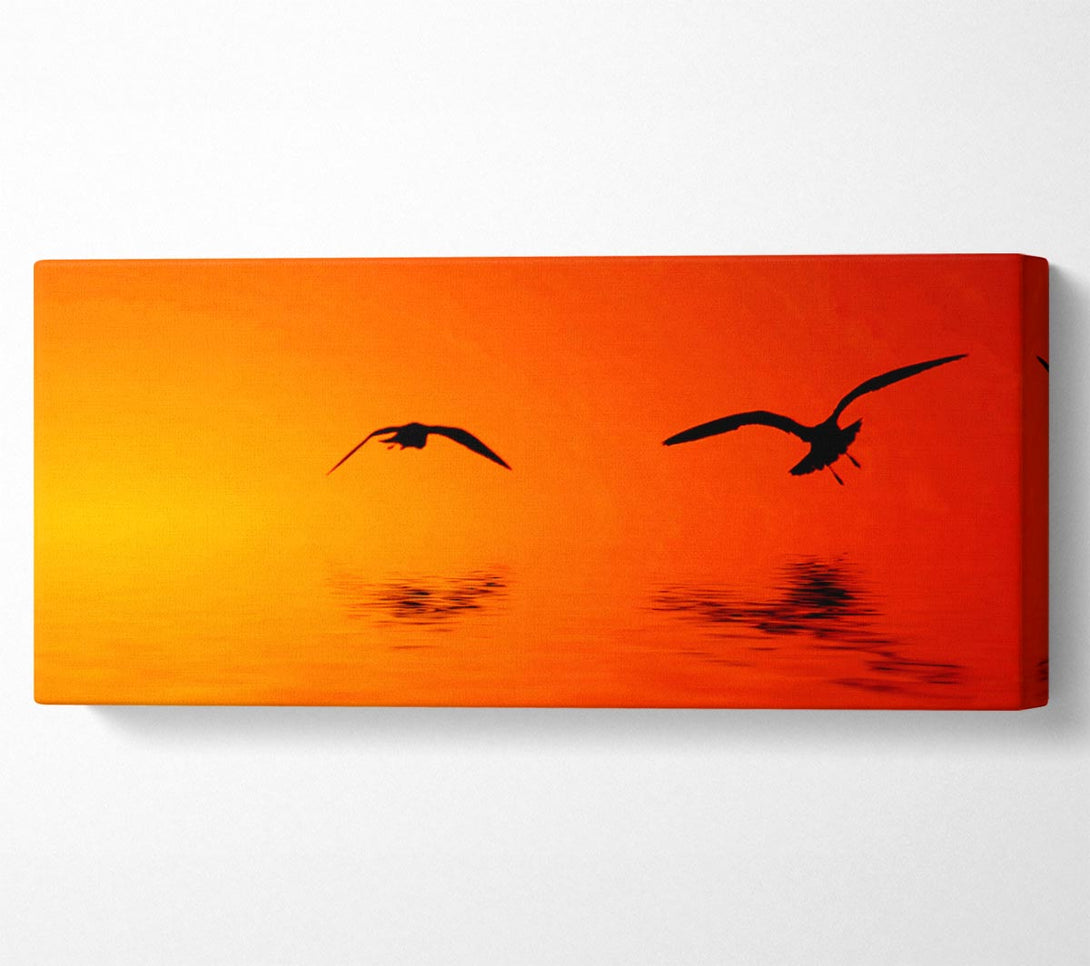 Picture of Orange Ocean Flight Panoramic Canvas Wall Art