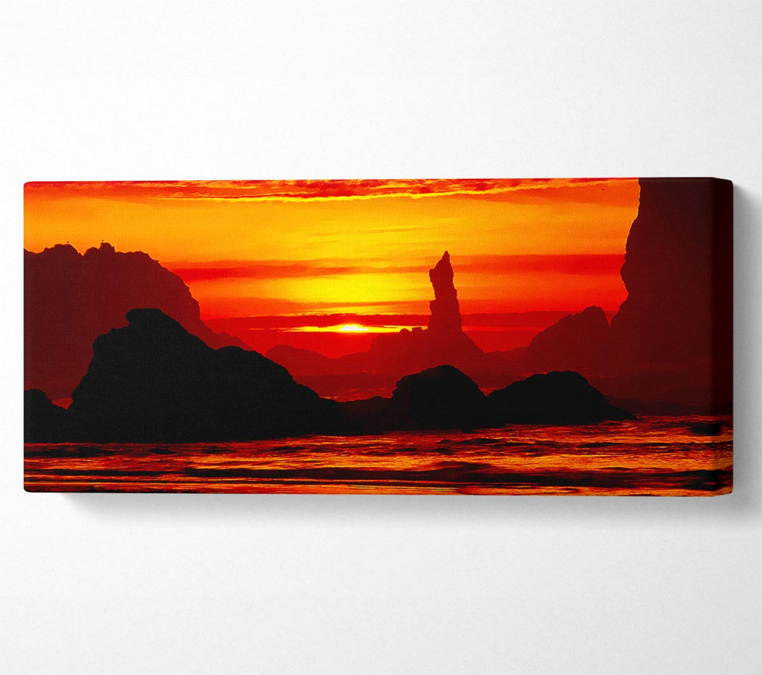 Picture of Orange Ocean Monuments Panoramic Canvas Wall Art