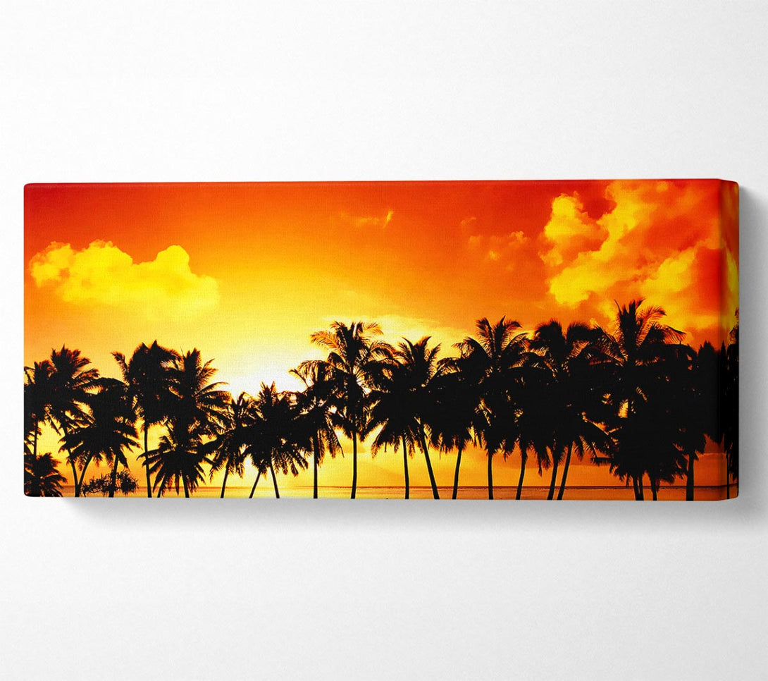 Orange Palm Tree Sunset canvas, printed on coated polyester canvas. Mounted on to a 44mm box frame, ready to hang.