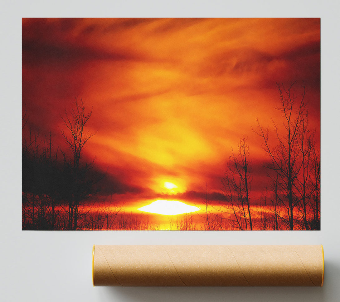 Our Orange Sunblaze Through The Misty Sky Poster is printed 260 GSM premium lustre paper that offers vibrant colours and exceptional detail.