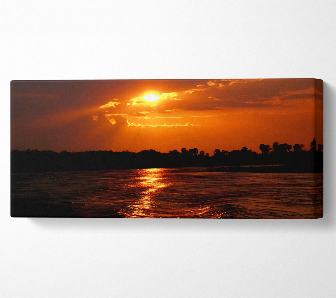 Picture of Orange Waves Lapping Panoramic Canvas Wall Art