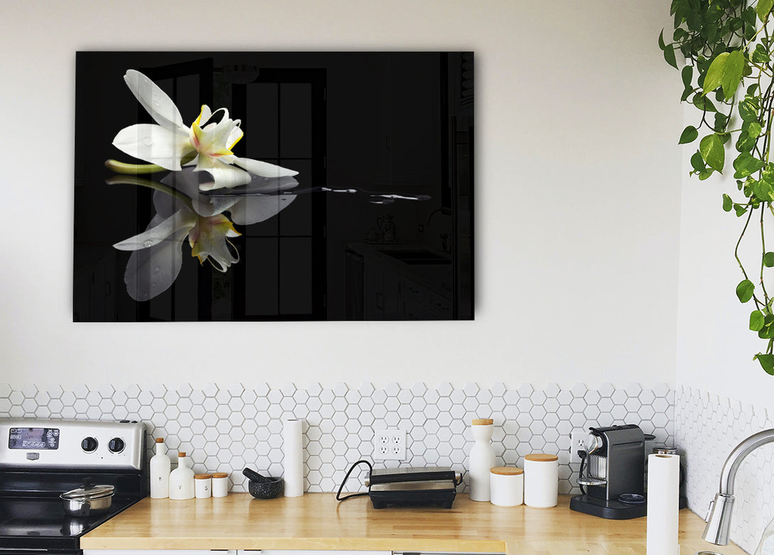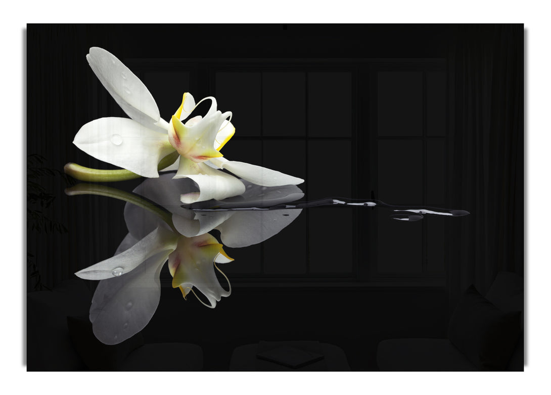 Orchid on black acrylic print, UV printed onto 5mm thick acrylic glass. Comes with everything you need to hang on your wall.