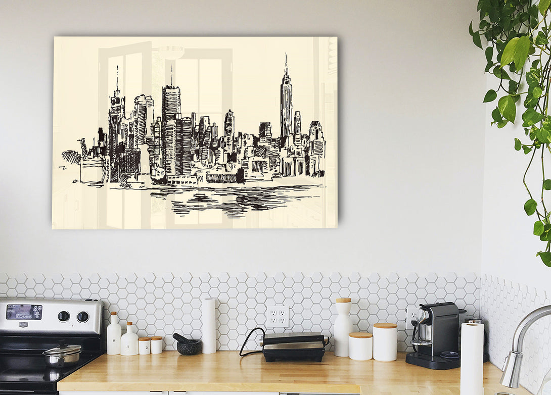 Outline Of The City 6 acrylic print, UV printed onto 5mm thick acrylic glass. Comes with everything you need to hang on your wall.