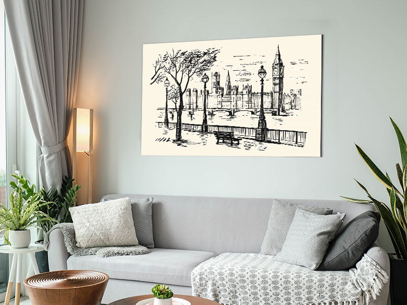 Outline Of The Houses Of Parliament Printed on brushed aluminium dibond. A modern way to display art and easy to maintain.