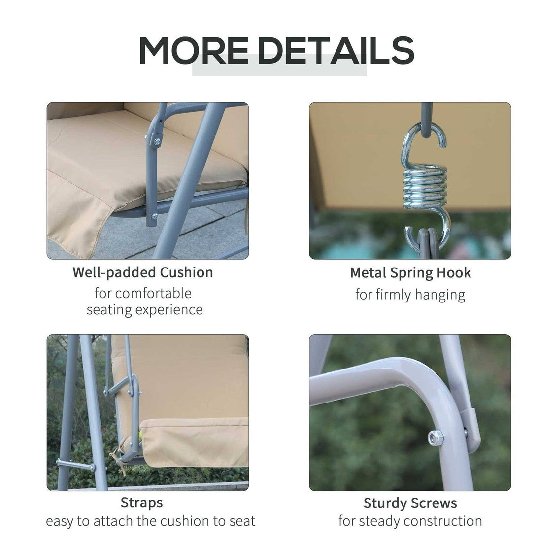 This Outsunny swing chair is a must for anyone who loves their garden. Using tough, heavy-duty metal to form an A-shape frame which effortlessly supports up to 180kg, the swing bench is fitted with a double seat swing seat. A table is fitted in the middle so you can keep smaller things close to you. A top canopy protects against light weather UV rays and direct sun glare from above. sunlight and wind. Comes with padded seats for comfort. So sit back, and relax.