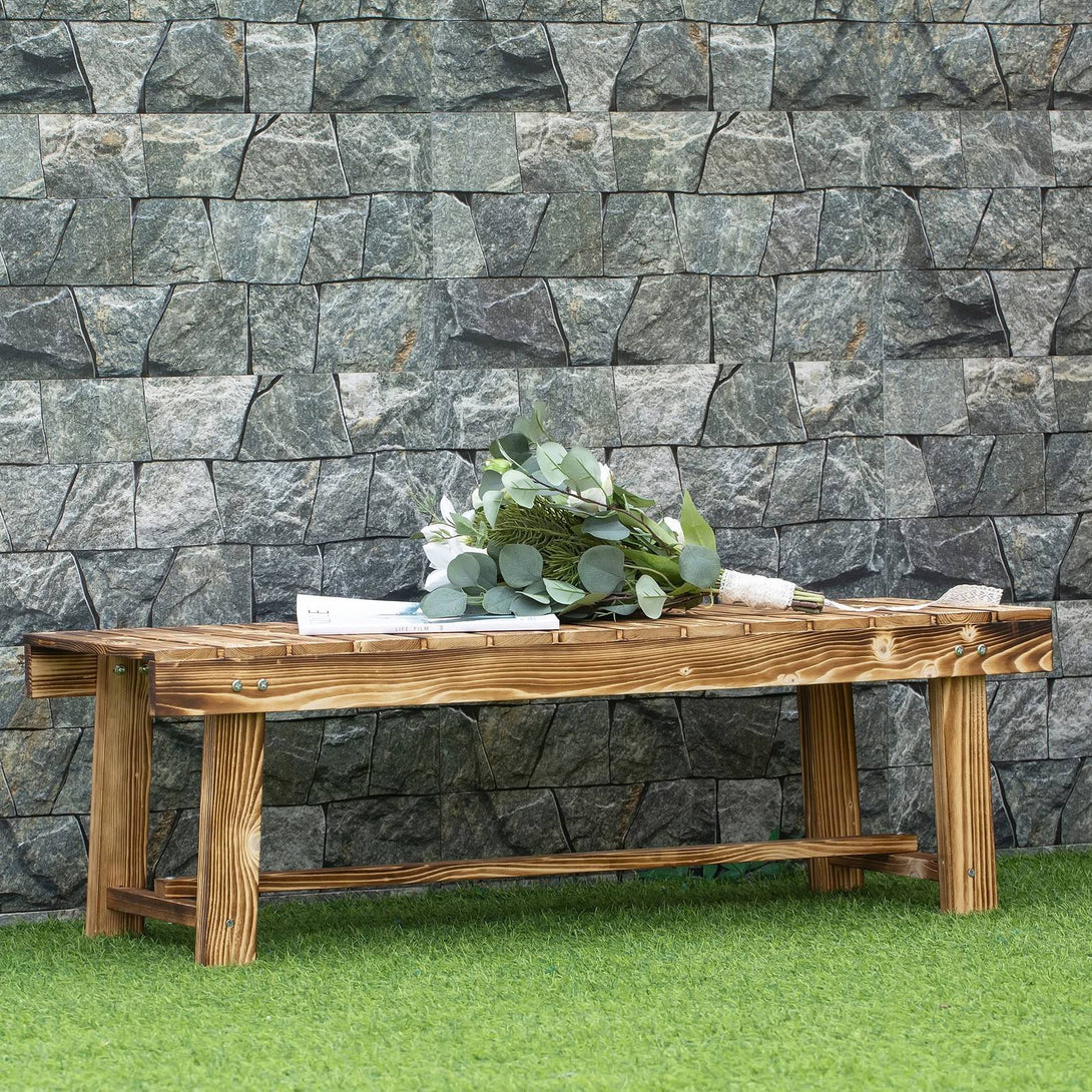 Outsunny 2-seater Outdoor Indoor Garden Wooden Bench Patio Loveseat Fir 110L x 38W x 35H cm Carbonised