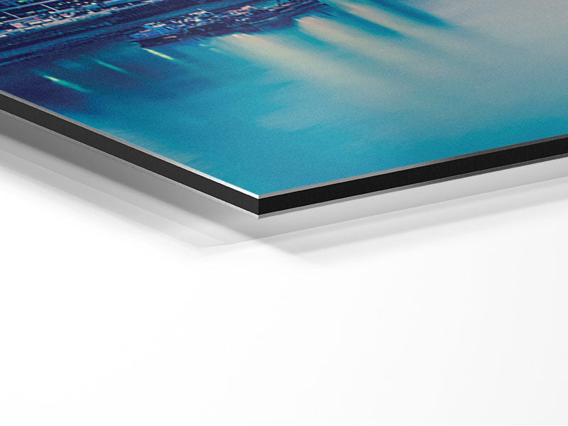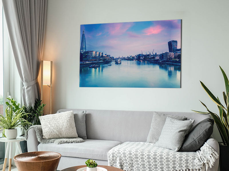 Over The Iconic Thames Printed on brushed aluminium dibond. A modern way to display art and easy to maintain.