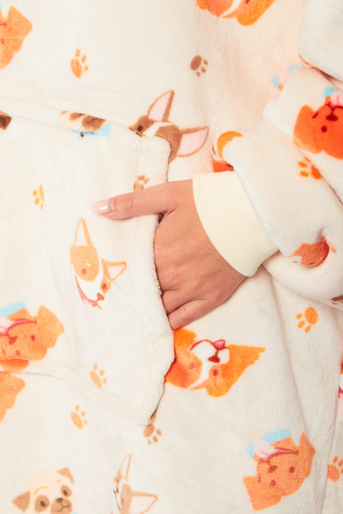 Oversized Hooded Reversible Sherpa Plush Fleece Blanket Hoodie with Adorable Dogs Print Ultra Soft Wearable Blanket for Adults and Kids One Size by Daisy Dreamer