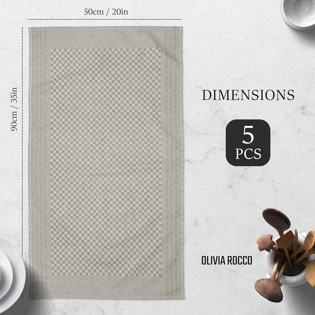 Pack of 5 Large Super Absorbent 100 Percent Cotton Tea Towels Quick Dry Durable Check Pattern Dish Cloths for Kitchen Home and Professional Use by OLIVIA ROCCO