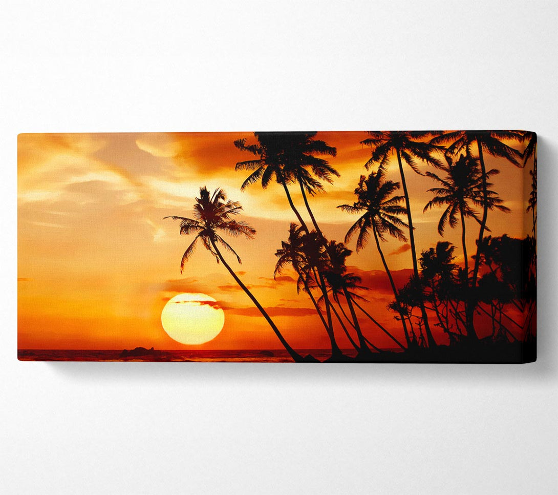 Picture of Palmtree Sunset Over The Ocean Panoramic Canvas Wall Art