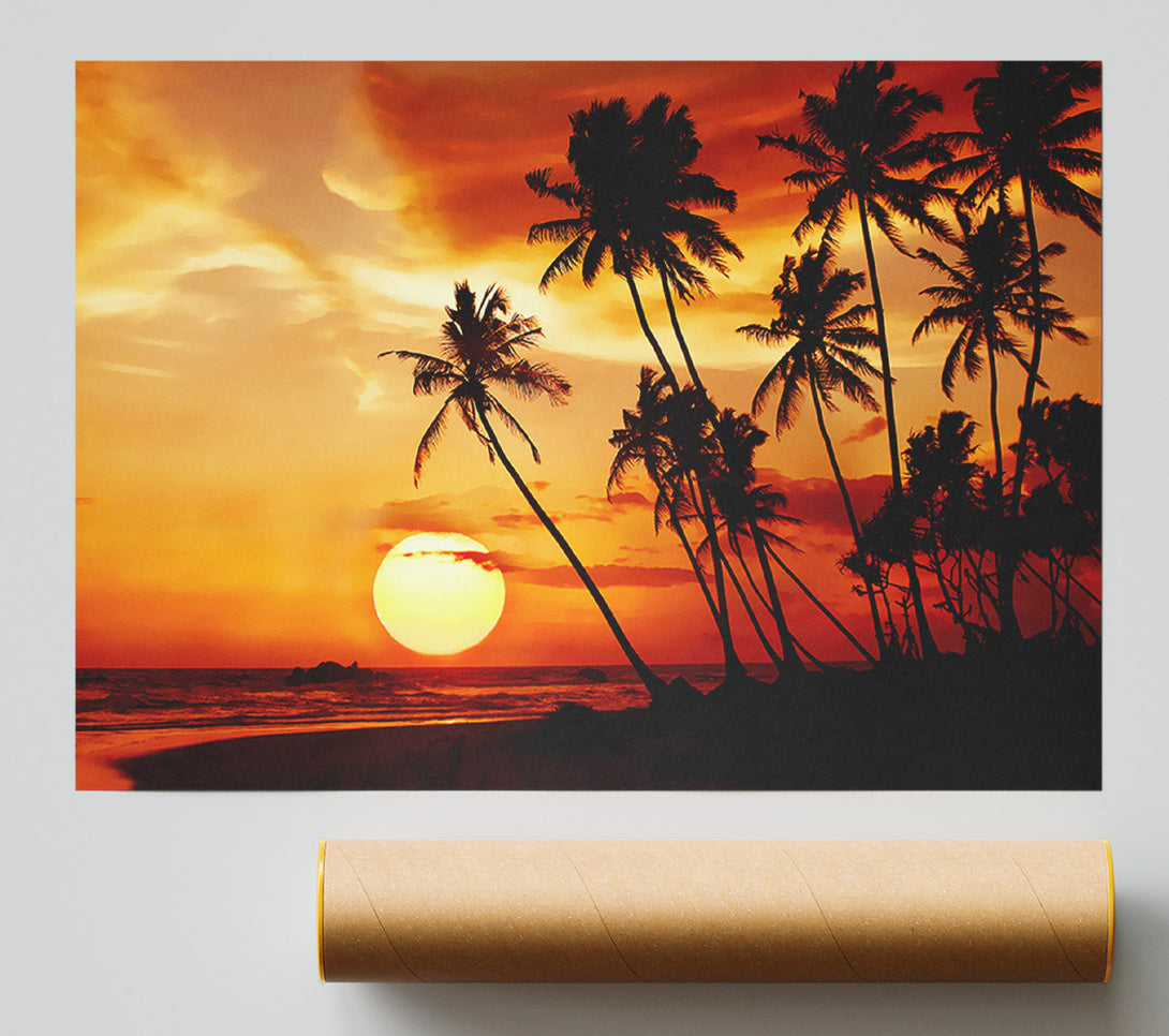 Our Palmtree Sunset Over The Ocean Poster is printed 260 GSM premium lustre paper that offers vibrant colours and exceptional detail.