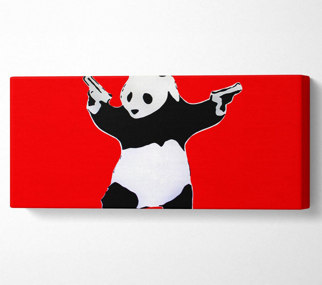 Panda Hold-Up Red canvas, printed on coated polyester canvas. Mounted on to a 44mm box frame, ready to hang.