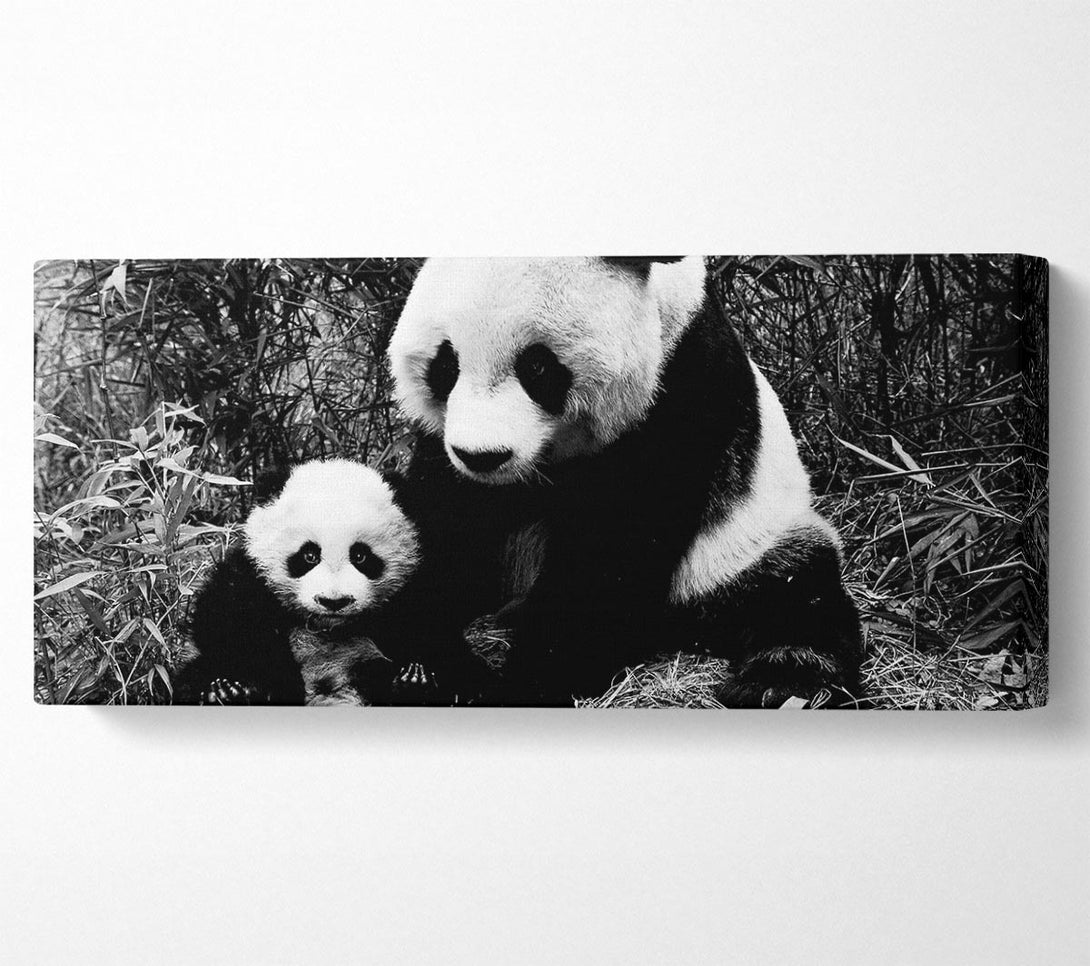Picture of Panda Mother And Baby Panoramic Canvas Wall Art