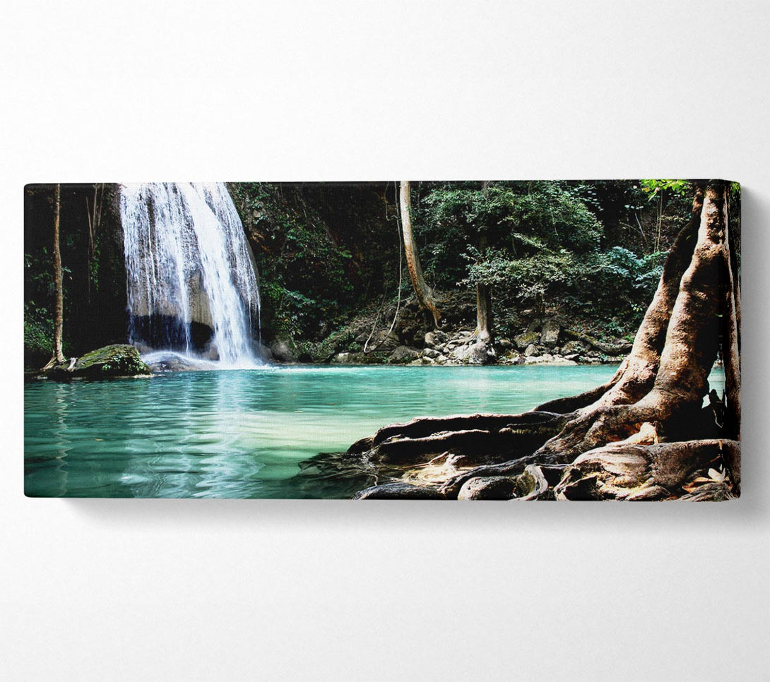 Paradise Waterfall canvas, printed on coated polyester canvas. Mounted on to a 44mm box frame, ready to hang.