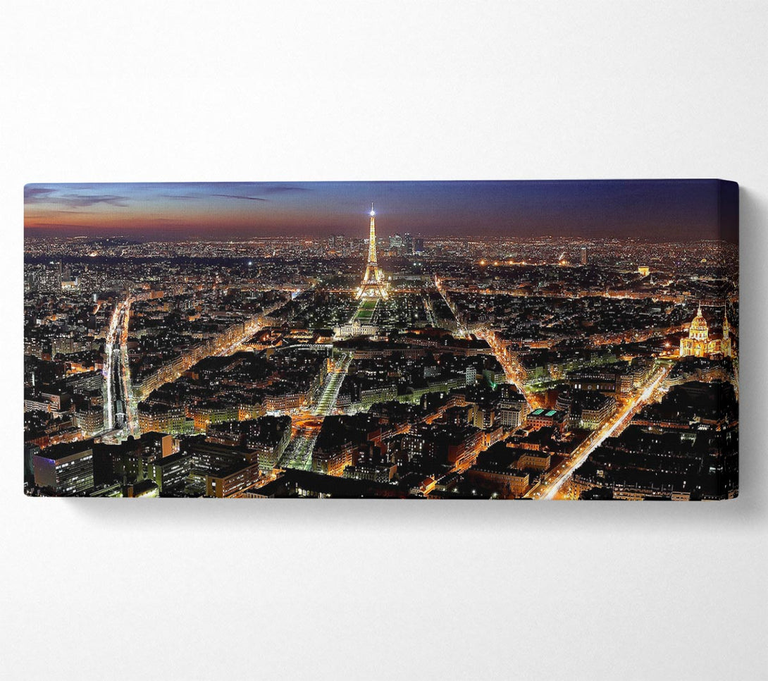 Paris Panoramic View canvas, printed on coated polyester canvas. Mounted on to a 44mm box frame, ready to hang.
