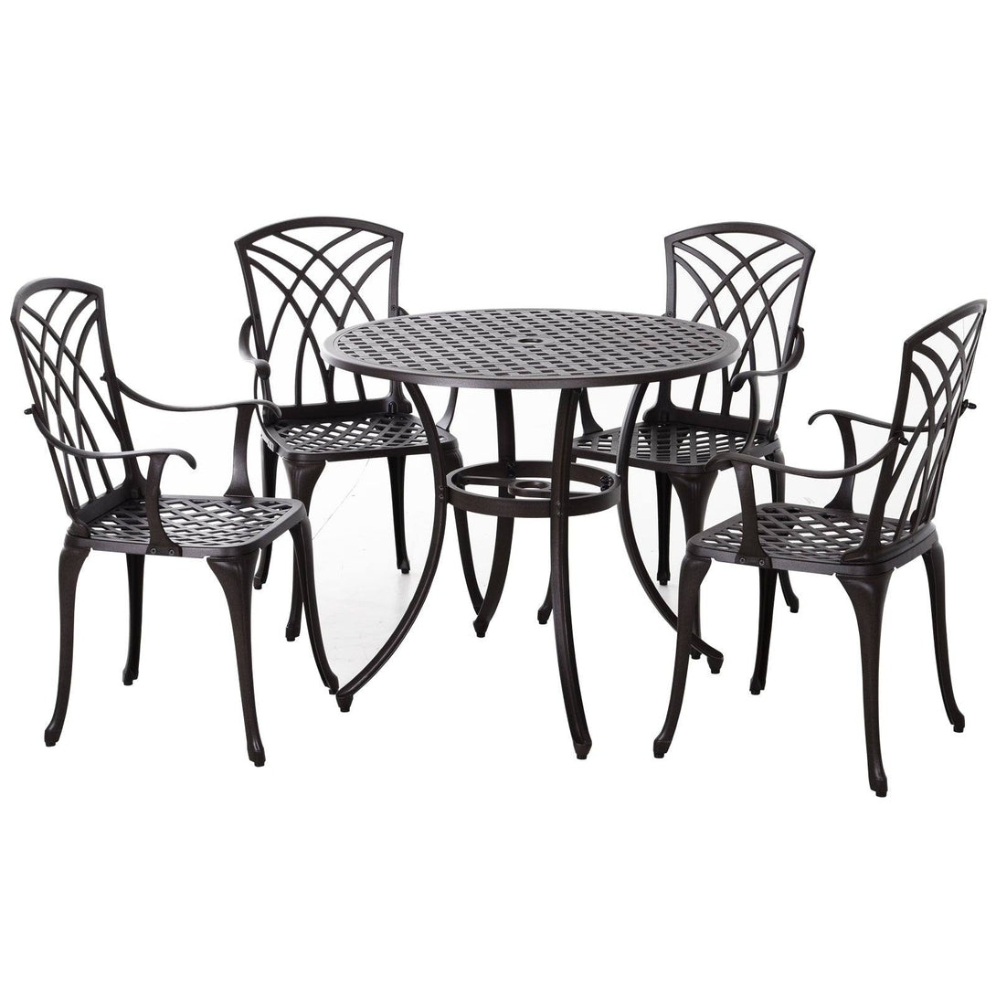 Patio Cast Aluminium 5-Piece Dining Table & 4 Chairs Set Outdoor Garden Furniture