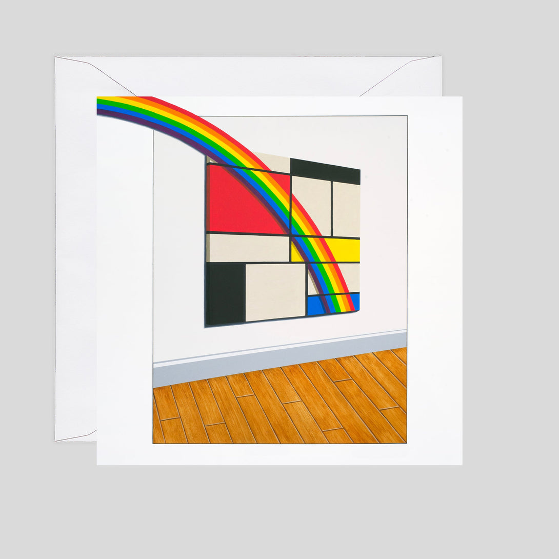 Patrick held his first solo show in 1961 at the Portal Gallery, London. It was the first one-man show by a Pop Artist, though they were not even called that then. A few years later, Hughes made two seminal reverse perspective works, Infinity and Sticking-out Room. In the 1970s Hughes’ name became synonymous with rainbow paintings, which also became very popular as prints and as postcards; people enjoyed them as decoration, but for Hughes the rainbow represented a solid experience.