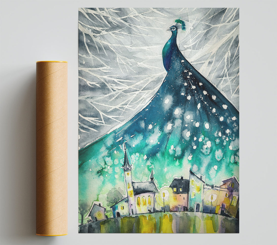 Peacock City Print
