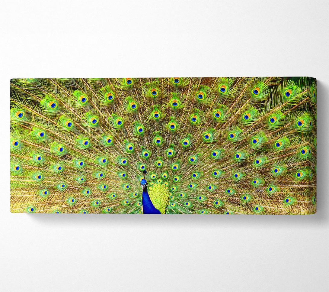 Peacock Paradise canvas, printed on coated polyester canvas. Mounted on to a 44mm box frame, ready to hang.
